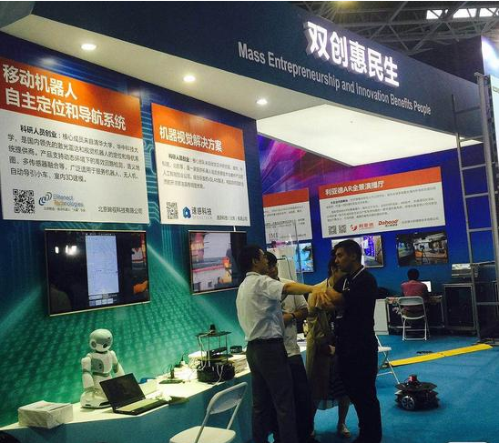 2017年9月15日到21日,公司经过中关村管委会的审核和考评,受邀2017年“中国双创周”北京会场展示活动。公司携带刚刚完成的纳恩博“路萌”机器人,搭载了基于“路萌”视觉的跟随程序,以及海尔家政机器人,Kobuki小车参加了展示。